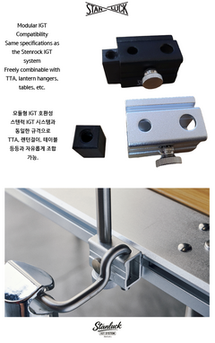 Featuring two mounting holes in different sizes, this sliding rail joint supports a wide range of IGT accessories and expansions. The small mounting hole is designed specifically for lanterns and lighting accessories, allowing direct attachment with a secure built-in knob. The large mounting hole is ideal for expansion accessories such as drawer kits, mesh boxes, shelves, and other modular add-ons.