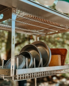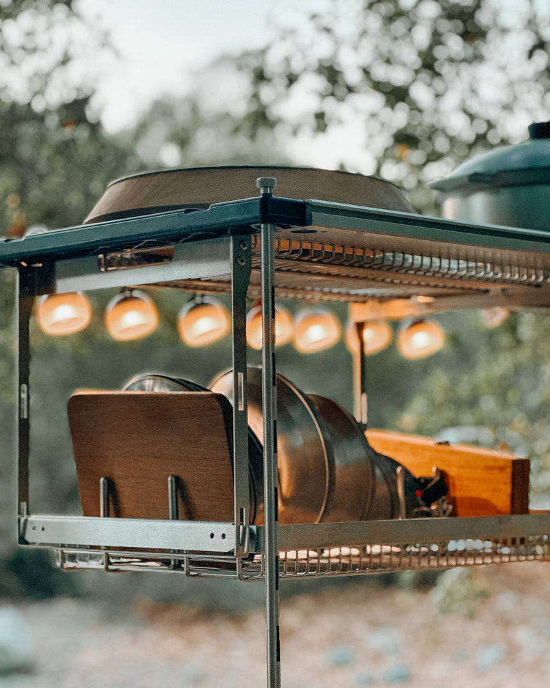 This design is ideal for campers who want to pack slightly less but still desire the variety to your IGT system by offering another modular choice. Whether you’re building out a minimal solo station or looking to mix layers with other Stanluck components, the IGT Single Layer Hanging Shelf keeps your camp kitchen clean, functional, and flexible.